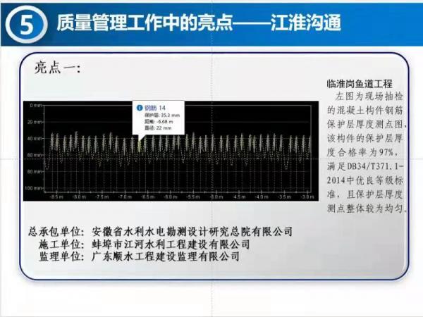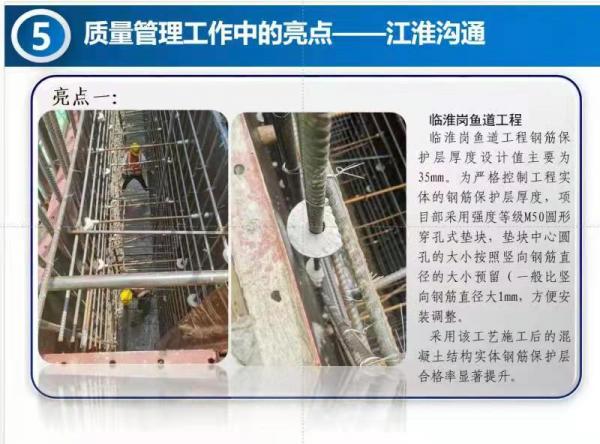 8月17日,引江濟(jì)淮集團(tuán)公司召開8月份質(zhì)量安全視頻會,會上,蚌埠江河公司承建的臨淮崗魚道工程混凝土鋼筋保護(hù)層作為亮點在視頻會上交流。